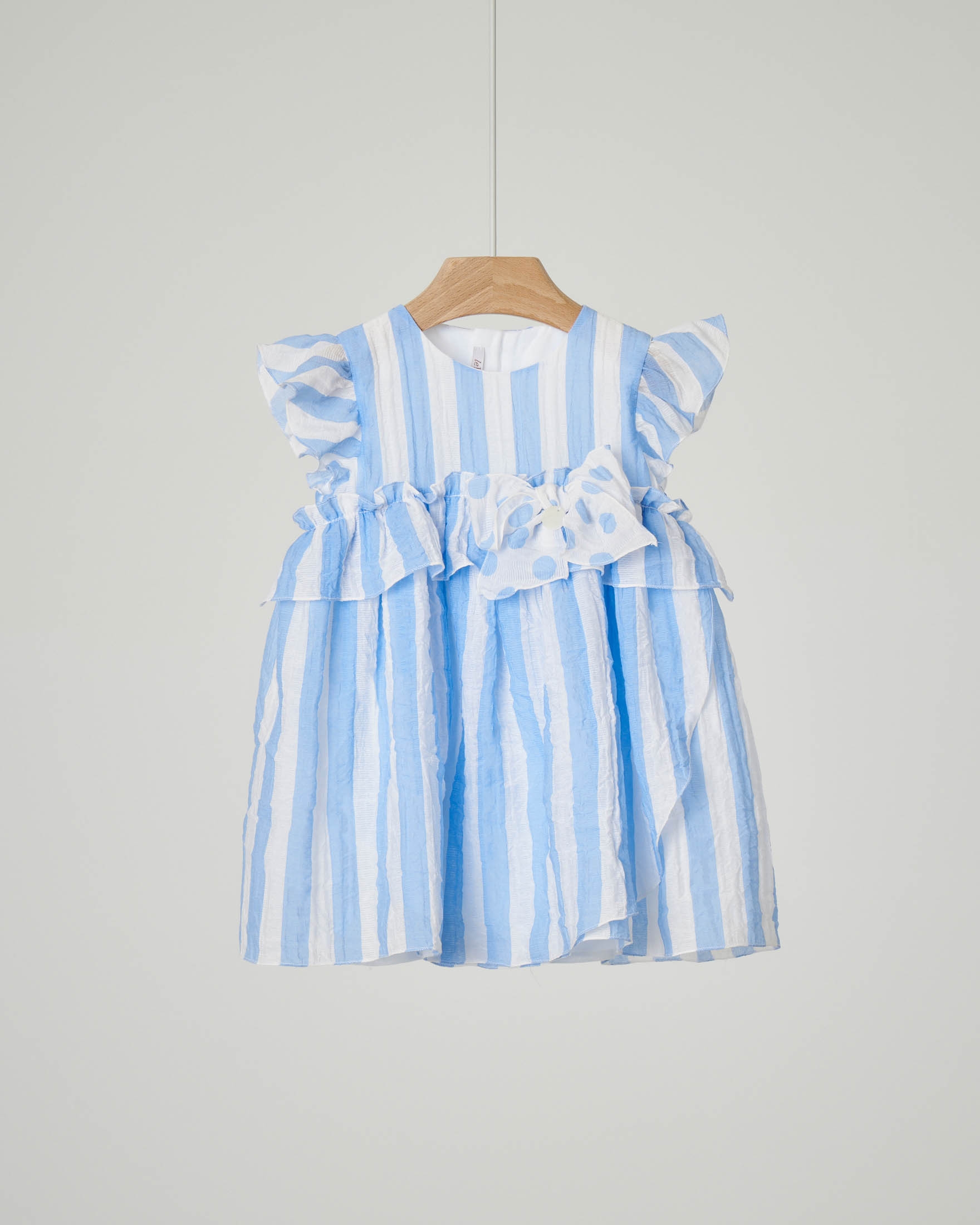 Abito a righe scollo tondo. Abito in maglia a righe. Abito per bambina in viscosa, ampio e svasato, con divertente alternanza di righe orizzontali e verticali, per un effetto ottico divertente. Oggi vediamo come abbinare un abito a righe colorate ispirate ai riflessi del mare. Abito corto in bastonetto di voile di cotone con righe lurex, con scollo a v incrociato e arricciato davanti.